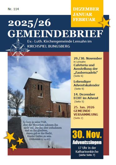 Der Gemeindebrief wird alle 3 Monate an alle Haushalte in Lensahn und Umgebung verteilt (zusammen mit dem Lensahner Kurier). Sollten Sie zur Kirchengemeinde