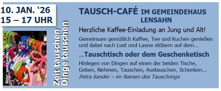 der aktuellen Tauschzeitung (auf der Website zu finden bzw. in ausgedruckter Form über das Kirchenbüro erhältlich). Manch einer stellt sich vielleicht Fragen: Tauschen soll funktionieren? Will da